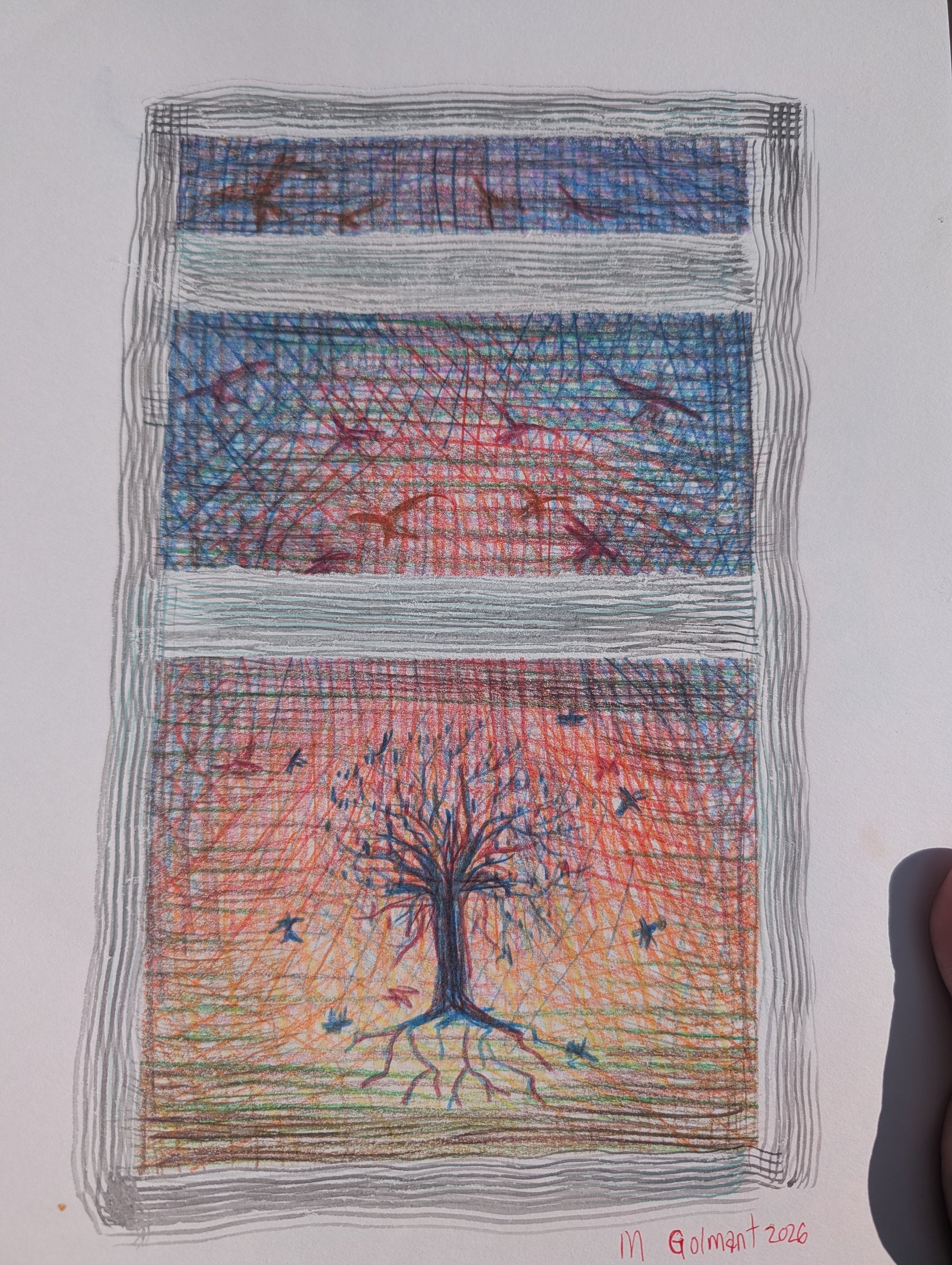 This watercolor pencil illustration on paper measures approximately 9 "x12" and ships unmounted and unframed.