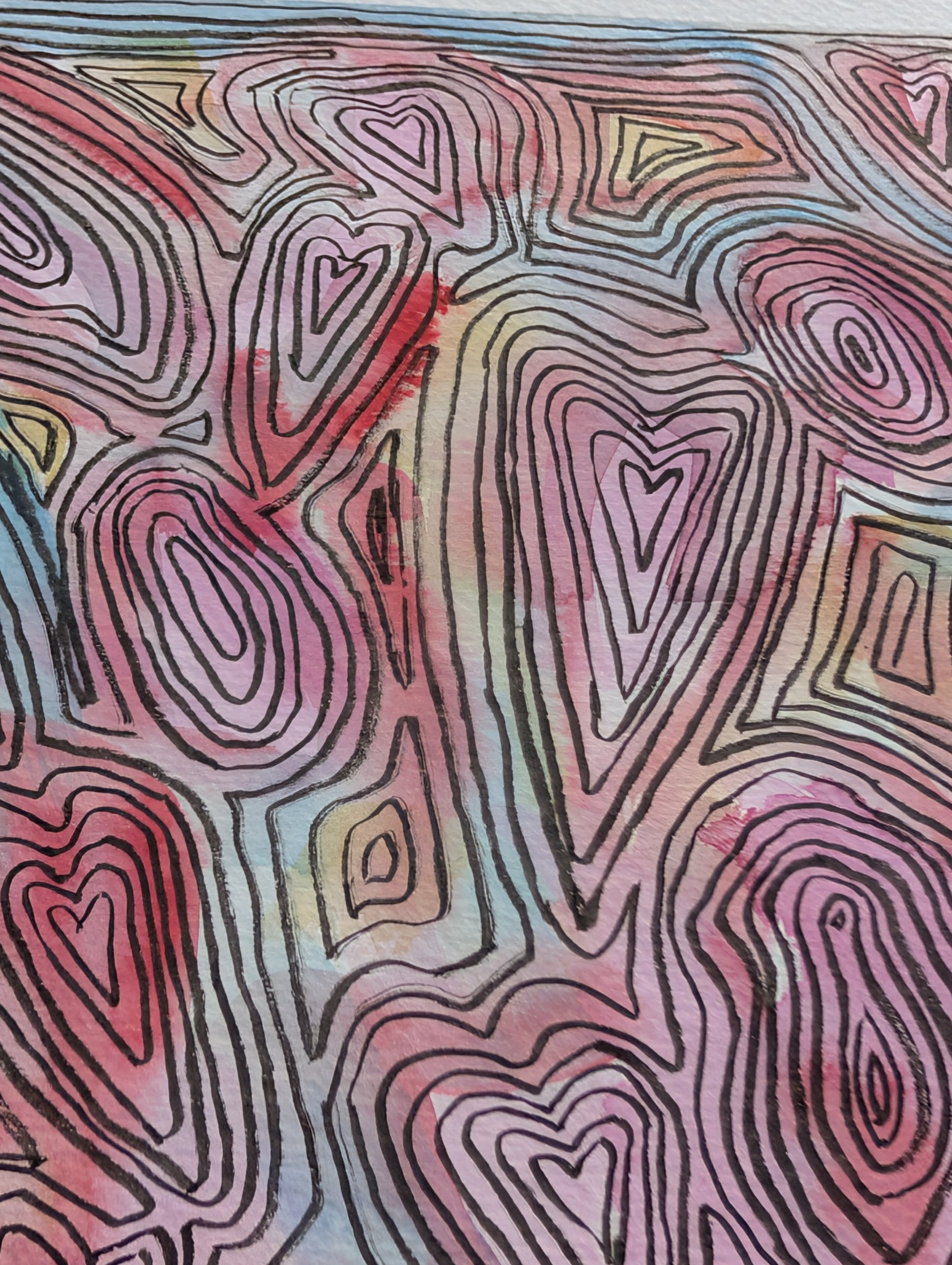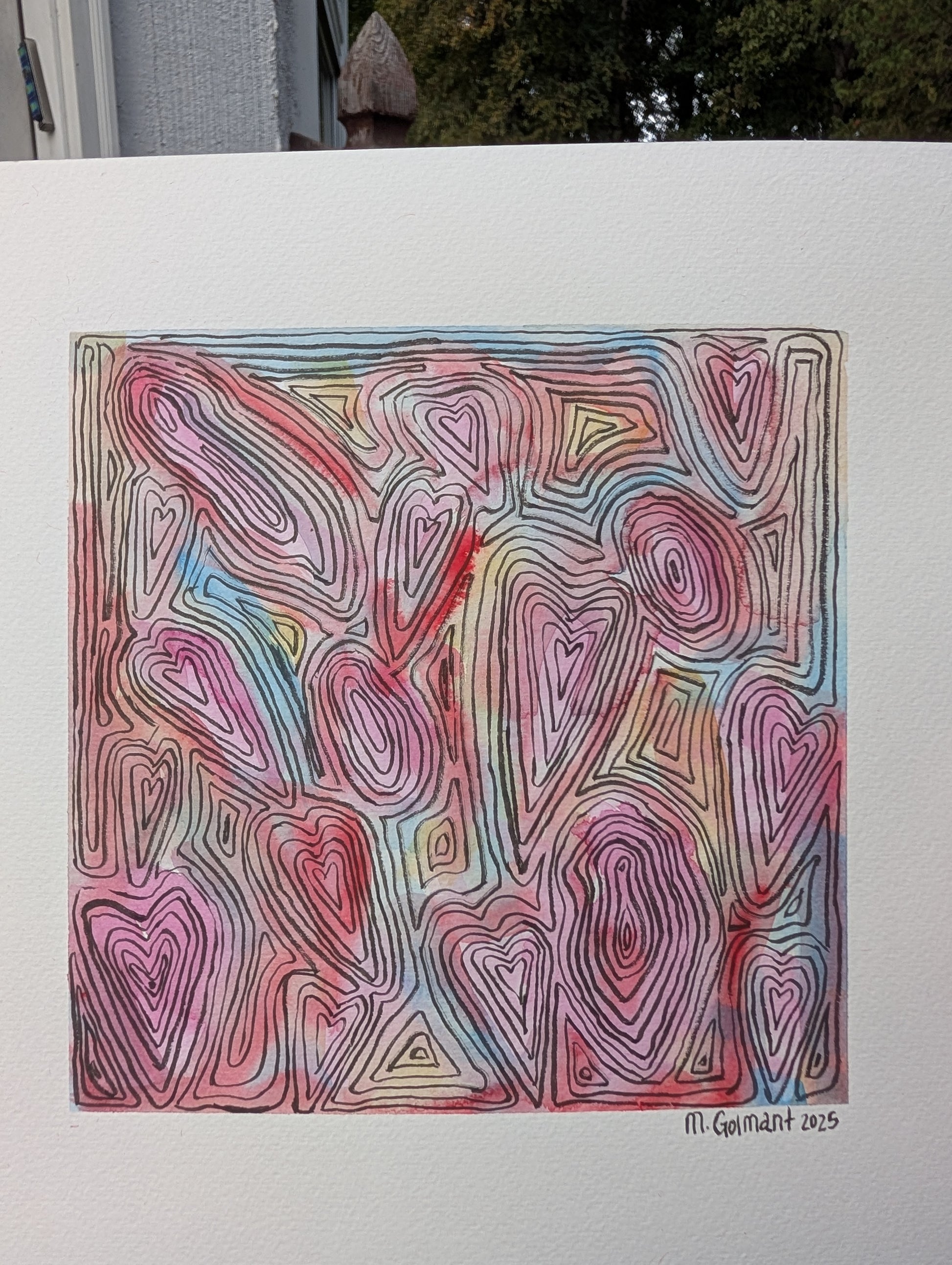 Watercolor and brush pen on paper. Measures 12"x12". Ships flat, unmounted and unframed.